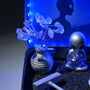 When the room darkens, a soft blue glow turns your desk into a quiet, interstellar sanctuary. The Fluorite crystals catch the light, shimmering like distant nebulae.