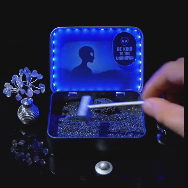 Cosmic Artifacts: “Be Kind to the Unknown” magnet + deep-space backdrop card.
