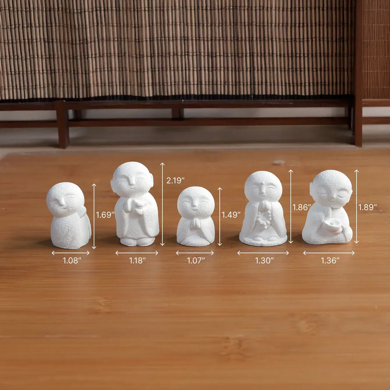 | Namaste Monk | 2.19" (5.6cm) | 1.18" (3.0cm) |