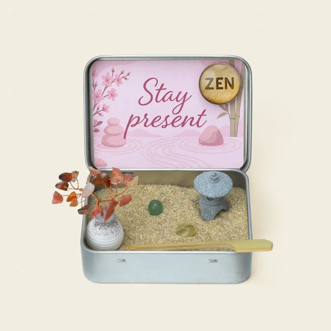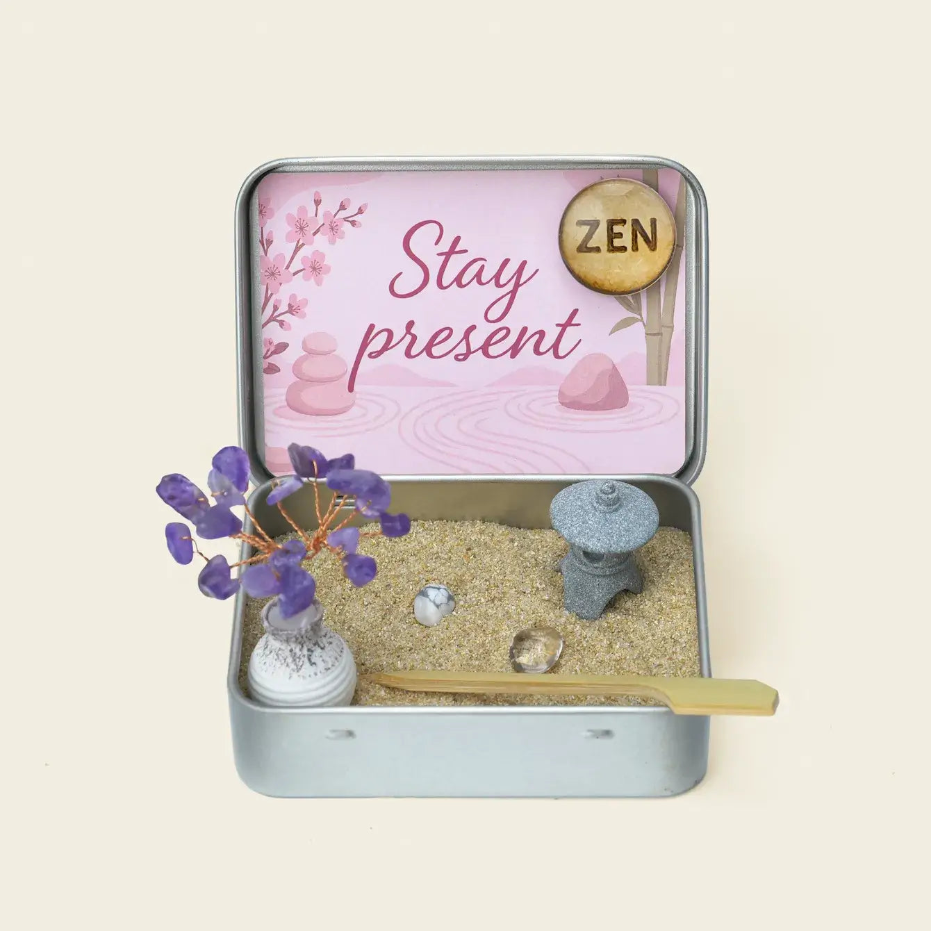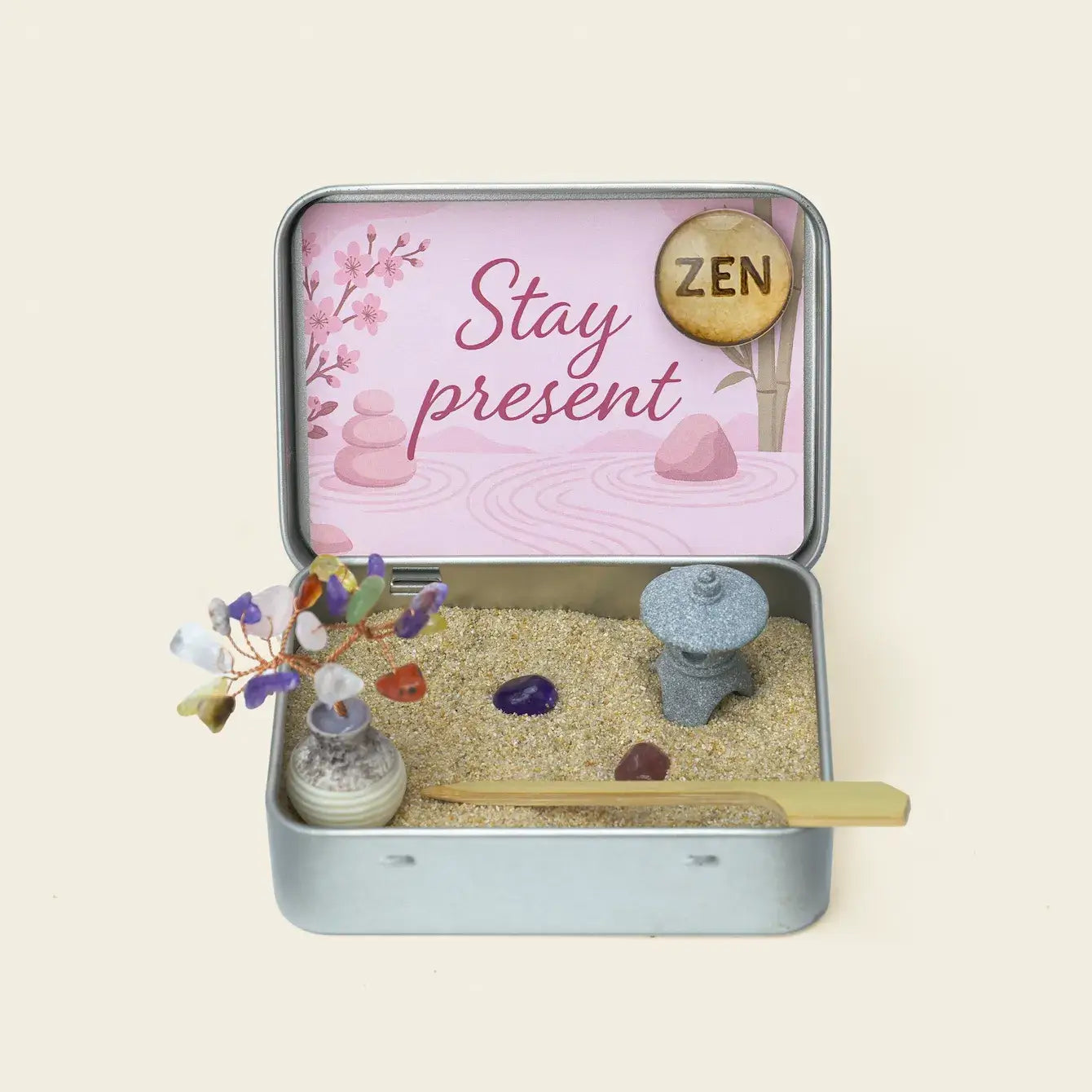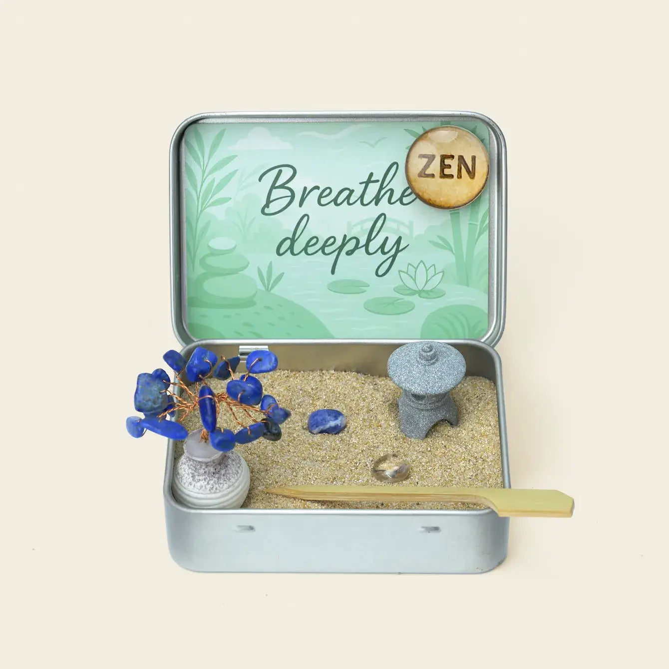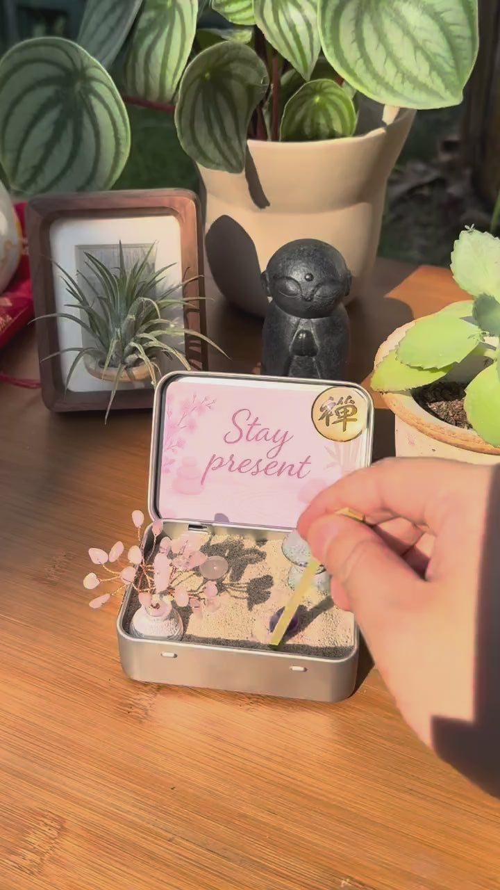 Bring mindfulness anywhere with the Pocket of Calm Zen garden. Each set is crafted with natural sand, crystals, and mindful tools to create a calming ritual in the palm of your hand. With nine themes such as love, peace, clarity, and protection, these mini Zen gardens make a thoughtful gift and a simple way to invite balance into your daily routine. Perfect for the office, home, or travel, Pocket of Calm is your companion for stress relief and inner peace.