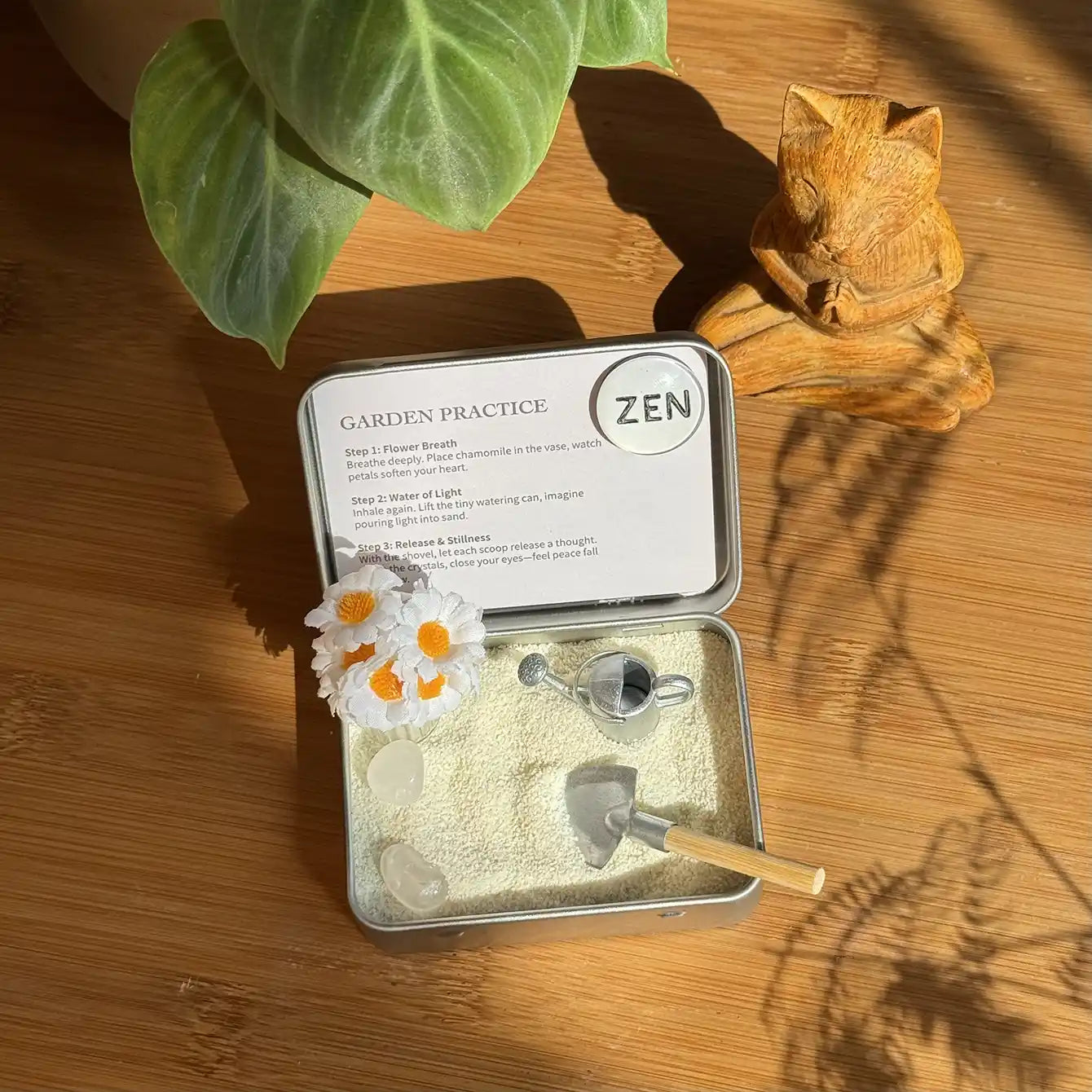 Pour the sand, arrange the items, and follow the card's steps. Enjoy the tranquility it brings to your day.