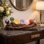 Features a curated selection of natural crystal spheres chosen for color, texture, and aesthetic balance—not symbolic claims. -