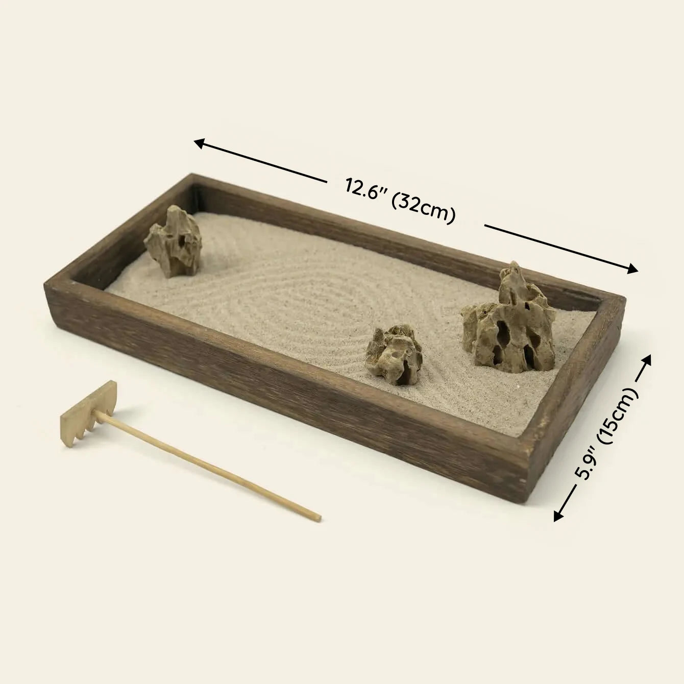 ❖ Functional Features: Gently raking the sand helps relieve stress and restore a sense of peace andbalance.Arranging the stones and sand enhances focus and fosters a serene meditative experience.